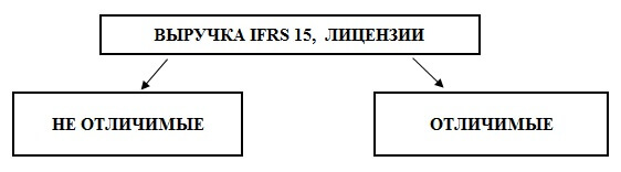 С точки зрения бухгалтерского учета выручки все лицензии делятся на отличимые, т.е. являющиеся отдельным обязательством к исполнению, и лицензии, которые могут приносить выгоды только вместе с другими товарами и услугами.