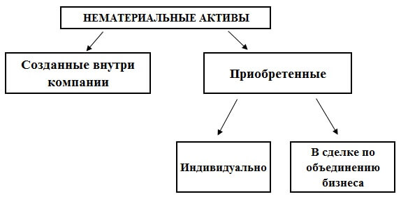 С приобретенными нематериальными активами дело обстоит проще: они имеют историческую стоимость, сама сделка по покупке свидетельствует о выполнении критерия идентифицируемости. Такие нематериальные активы могут приобретаться как индивидуально, так и вместе с другими активами и обязательствами при покупке бизнеса. Как правило, большинство нематериальных активов признается именно в сделках по объединению бизнеса.